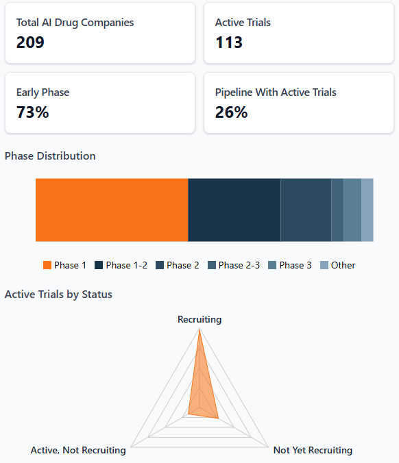 The honest weak spots are exactly the ones you'd expect. AI-designed drugs sail through Phase 1 safety trials at unusually high rates, but their Phase 2 efficacy success is still stuck around 40%, the same as everything else.