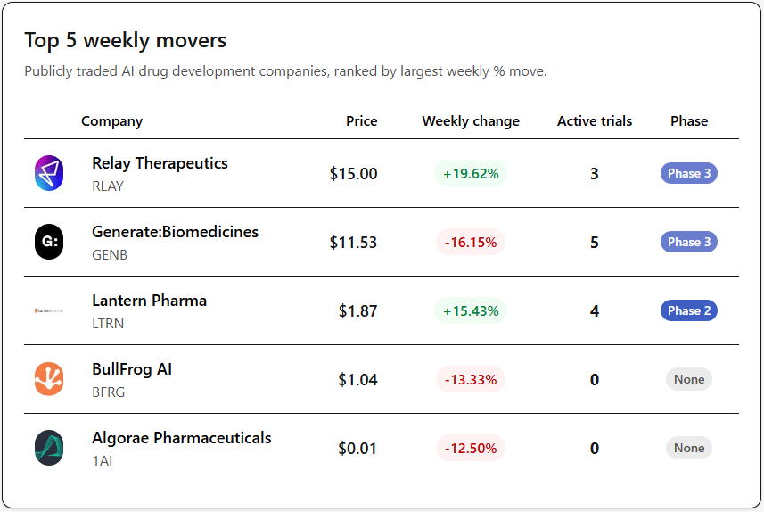 Lantern Pharma (+15.43%) finally shipped. Their April 9 live demo of withZeta.ai, pitched as the first multi-agentic co-scientist for rare cancers, put a working product in front of the market for the first time.